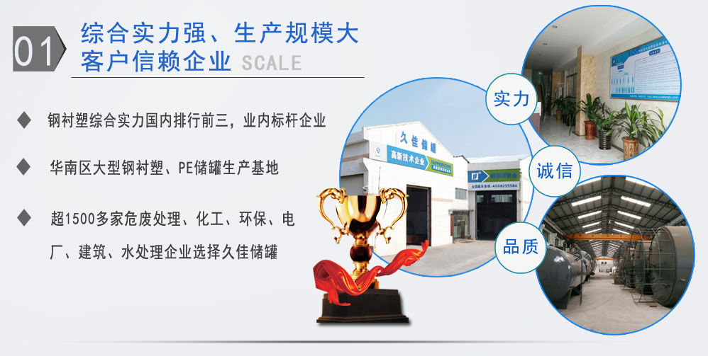公司有鋼襯塑PE/PO、PE全塑、碳鋼、不銹鋼四大系列100多個品種,專注于常壓儲存容器生產,其產品包括鋼襯塑儲罐管口一體成型PE儲罐碳鋼儲罐不銹鋼儲罐、反應釜、攪拌罐、離子交換柱、鋼襯PE/PO儲罐塑料儲罐鹽酸儲罐硫酸儲罐等等。更大限度滿足廣大客戶的各種需求,同時可以根據客戶的需要加工定制各種防腐設備。